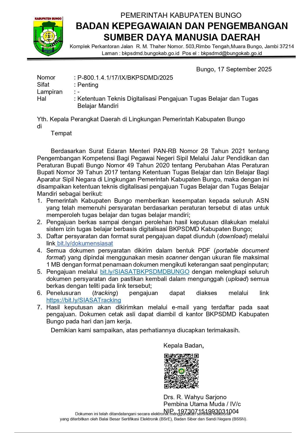 Ketentuan Teknis Digitalisasi Pengajuan Tugas Belajar dan Tugas Belajar Mandiri